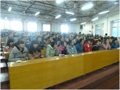 22日中午1210分已经有很多同学陆续进入会场——综合楼阶梯教室,到1230分,宣讲会准时开始,而可容纳250人的大教室也已经坐满。出乎意料的是,来到现场的约有三分之二并不是高三学生,而是高一高二的同学,仅是看到校内张贴的海报宣传就过来参与活动了。主持人是来自华中师范大学的一中2012届毕业生明淇以及来自中南财经政法大学的2013届毕业生石泽华,他们简短地介绍了今天的几位主讲人和大致活动流程,就拉开了宣讲会的序幕。首先是武汉大学的陆静怡和王铖同学做备考经验和大学情况的介绍,他们分别来自法学院和城市与设计学院。陆静怡引用了很多名人诸如巴尔扎克和乔布斯的名言作为对学弟学妹们的鼓励,并详细说明了法学专业的特色。王铖同学则展示了武汉大学漂亮的四季风景摄影图片以及新鲜丰富的大学生活,并现场播放视频,展现武大新生军训时国防生们的潇洒军姿。然后是来自华中科技大学的尹辉煌和肖龙凯对富有特色的大学生活多层面的介绍,如华科数目众多的食堂,参与学校实验项目的经历和一些非官方的资料讲解,幽默又不失深刻的语言风格引起场内阵阵欢笑。接下来是2013年阳新一中的文科状元,现就读于中国人民政法大学的陈匡运做经验介绍,他一出场便掀起现场一片热烈的掌声。“人大的很多人文类学科都是国内排名数一数二的,学习氛围也很浓厚”,他这样描述道,并对大多数人认为“人大就是走从政路”的误区作出澄清。关于学习技巧,他强调“不要跟着老师的节奏跑,要结合自己的情况,每一门学科都有特定的学习技巧,比如历史和地理就是知识点往细处梳理,而政治就要牢牢把握大纲式的思路“。接着胡祎、彭丽对华师的近几年的录取分数线、就业率和就业地区分布等以图片文字形式做了详细说明,并辅以优势专业的介绍。宣讲会最后是中南财大的石泽华对大学的奖励资助项目以及对外交流情况作说明,尤其是对华中地区“七校联合办学”的特色项目进行详细解说,并让现场的同学们自由提问。由于时间的限制,在进行了十几轮的互动问答后,1415分宣讲会结束。