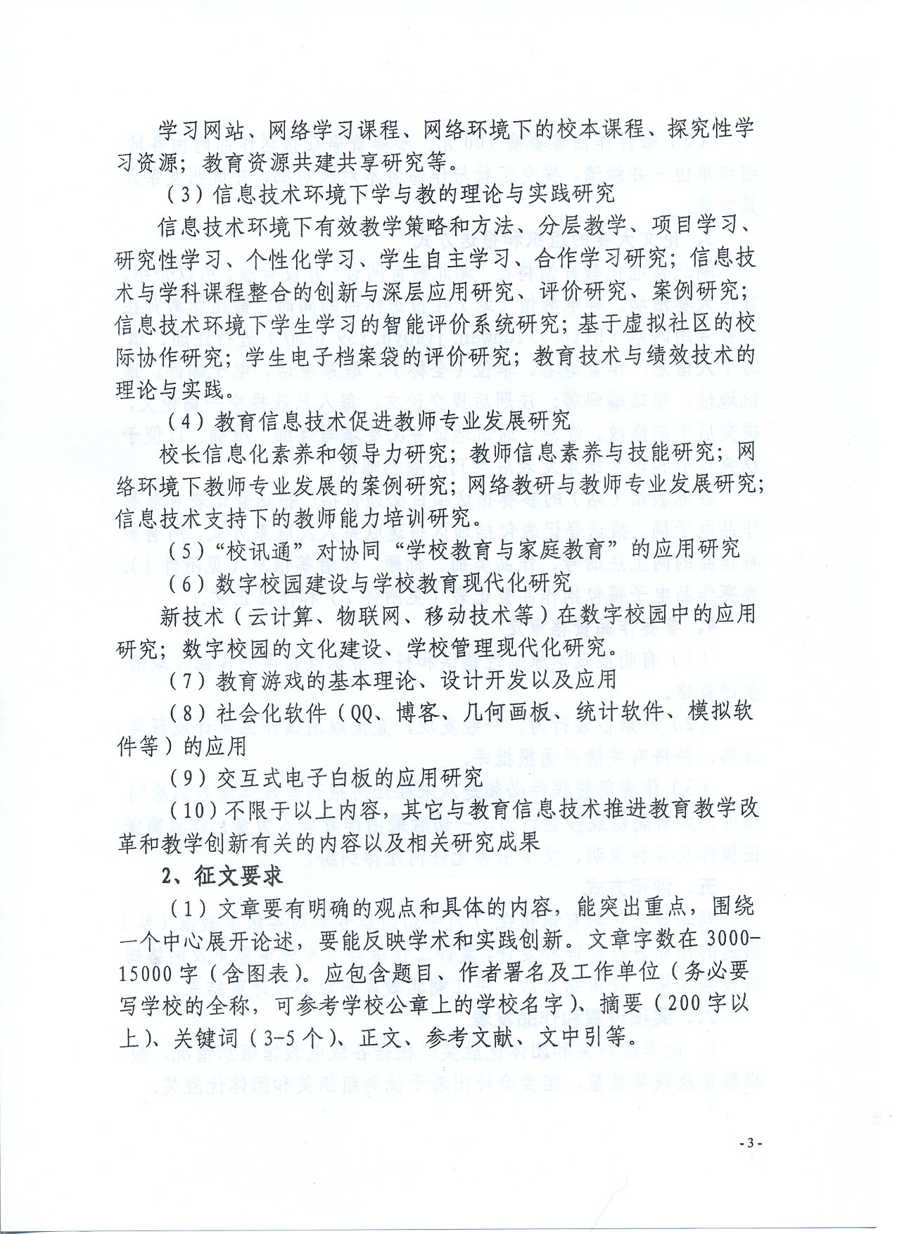 2、论文必须格式规范,包含有标题、作者、摘要、关键词、正文、参考文献;教学设计必须包含有教学目标、教学重难点、学生分析、教学内容分析、教学媒体与资源的选择与应用、教学实施主寸程、教学评价与反思。