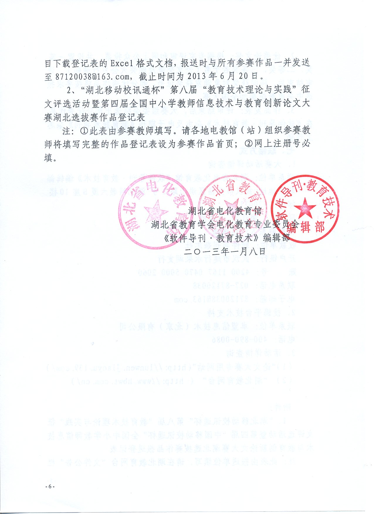 1、报送要求:本次活动由各地教研员统一组织报送,参赛作品须为电子稿,不接受传统纸质文稿。个人也可将作品存入U盘来县电教馆报名。