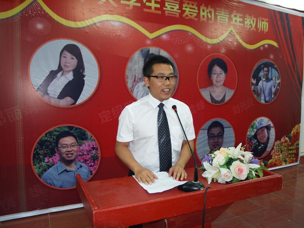 521 19时,阳新一中在学校阶梯教室举行“阳新一中学生喜爱的青年教师”颁奖暨师德师风演讲大会,阳新县教育局局长柯友国、副局长尹闻杰、基教科长潘世刚等领导莅临大会并为获奖教师颁奖。成亚芬、邓丽娟、定绍朋、李险峰、刘元庆、明平发、饶雄、赵碧云、赵才梁、周顺顺十位青年教师荣获“阳新一中学生喜爱的青年教师”称号。