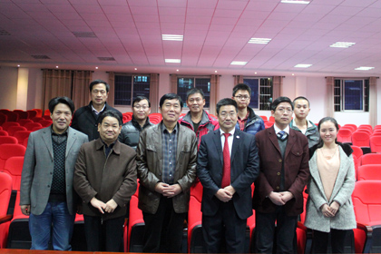 讲座现场领导、嘉宾、老师与黄开才教授合影 |