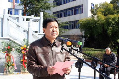 阳新一中校长明道树首先致欢迎词,明校长代表阳新一中四千多名师生欢迎各位嘉宾的到来,明校长表示,今日石瑛先生铜像座落在继承了儒学优秀传统,着眼于未来创新发展的阳新一中校园里的日子,是一中全体学子的幸事,一中学子以后可以时时忆先贤、学先贤,一中“文化校园”的建设上又增添了浓墨重彩的一笔。