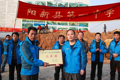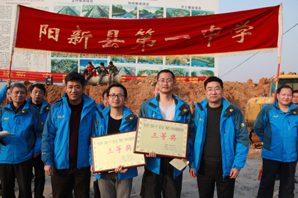 阳新一中校长明道树、县教育局工会主席柯美星给三等奖获得团队颁奖
