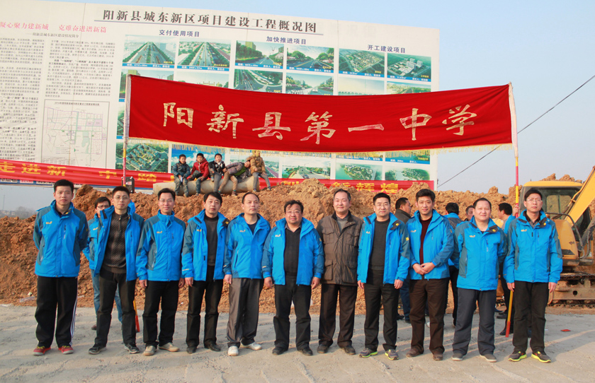 参加阳新一中长跑活动的领导、嘉宾在阳新城东新区教育城工地合影