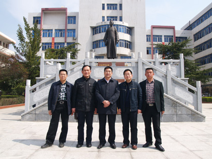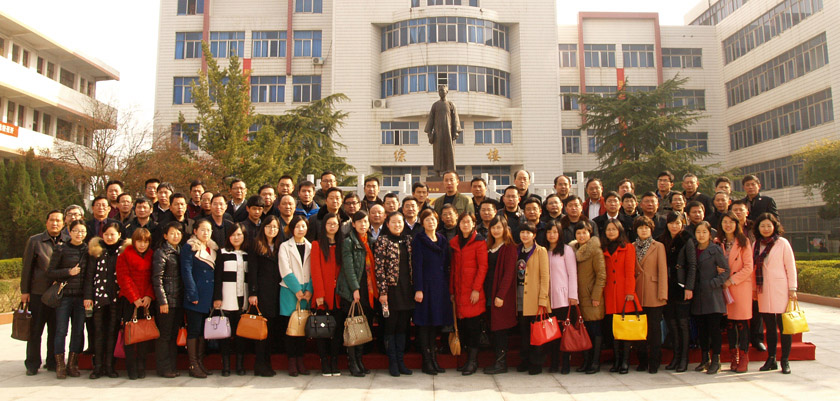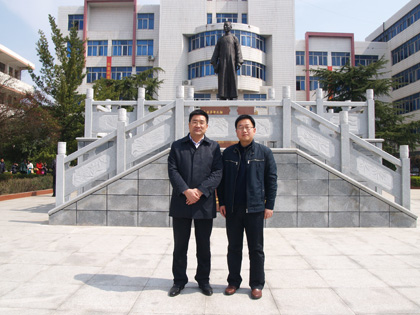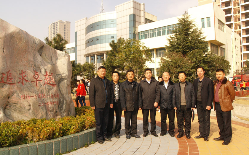 与会教师在阳新一中石瑛广场合影 阳新一中校长明道树(中间)与来访领导合影 阳新一中校长明道树(左一)与来访领导合影 领导合影