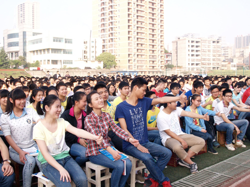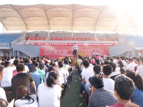 励志演讲在韩老师带领全场学生喊响励志口号中结束: