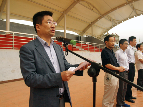5月2日早七点,开幕式在校运动场举行。参加会议的除高一年级全体领导外,学校政教处石章权主任、总务处曹晓辉主任、政教工作负责领导柯美宝副校长参加了开幕式,明道树校长作了重要讲话并宣布了活动的开幕。开幕式由高一年级负责同志李永红副校长主持,整个仪式包含升国旗奏国歌、学生代表讲话、运动员代表讲话、班主任代表讲话、裁判员代表讲话等七个步骤。学生代表表达了为班争光的竞技决心,运动员代表发表了“友谊第一、比赛第二”的竞技宣言,阳光班班主任刘涛代表全体班主任发表了与本班学生同呼吸、共进退的誓言,裁判员代表邓龙偈老师作了坚决服从大会的指挥,严格遵守竞赛规则和裁判员规则的誓词。年级党支部书记蔡云秀宣读了比赛十条纪律,包括全员参加、文明守序、安全第一、公平公正、服从裁判、忠于职守等内容。开幕式最后,明校长做了指导性讲话。他首先阐述了此次活动的目的是为了全面贯彻党的教育方针,全面推进素质教育,落实教育部“阳光体育运动要求”,践行为同学们未来发展奠基的育人理念。接着谈了活动的意义。学生身心健康的发展,既是学生人生发展的需要,更是国家民族强盛的需要。明校长引用梁启超先生的话“少年强则国强,少年智则国智,少年雄于世界,则国雄于世界”来勉励学生着眼于长远,着眼于未来,努力拼搏。最后,明校长站在学校和学生未来发展的高度提了三点希望与大家共勉:一是希望全体运动员和同学们发扬“顽强拼搏,团结互助,守规则,注意配合,重在参与,友谊第一,比赛第二”的体育精神,决不能逞个人英雄主义,任性而为,出现不尊重裁判,不尊重对手,不尊重观众,不遵守纪律,有损体育精神和团队形象的行为。二是希望全体裁判员坚持原则,严格执法,公正公平,决不徇私,为“阳光体育运动”聚集正能量。维护体育运动的公平、正义、阳光向上的良好形象,也为我校提出的“做阳光教师,推阳光校务,创阳光校园,育阳光学子”作表率。三是希望组委会及高一年级组以“安全有序,文明和谐,体验分享,全员参与,逐步提升,共同成长“为活动目标,精心组织,全程设计,以活动为载体进一步增强组织协调能力,增强团体集体荣誉感,在今后的各项工作中走在学校各年级的前列”。“有一必争,逢冠必夺,争先创优,不甘落后”。以踏实的作风,严谨的教风,浓厚的学风,昂扬向上的整体团队形象走进高二学段,为早日实现把我校建成“全县作龙头,全市起示范,全省有地位,省外有影响”的荆楚名校的办学目标作出应有的贡献。