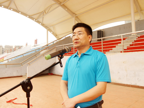 阳新一中校长明道树在高二球类运动会开模式上讲话