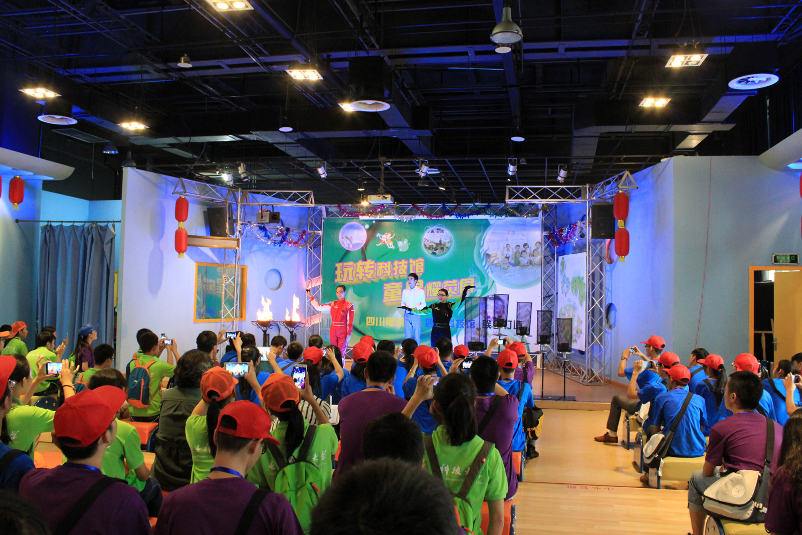 开营仪式结束后,营员们走进四川科技馆,遨游科学世界、感受科技魅力。四川科技馆设有力学、机械、能源、材料、航天科学、机器人工作室、疯狂科学秀、青少年科技园等 20个展区,约600件展品。展品集科学性、知识性、趣味性、参与性和艺术性于一体,借助声、光、电等现代化展示手段,生动形象地向公众普及科学知识。