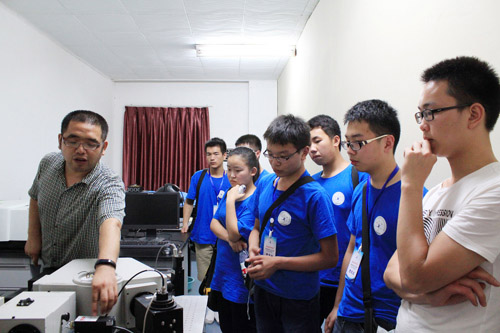 下午,第一组营员来到了四川大学第二理科楼的物理学院实验室。营员们被分成四个小组体验各不相同的物理趣味实验:激光偏振特性观测实验、高功率固体激光技术实验、棱镜光谱仪实验、透明陶瓷的制备和测试技术。
