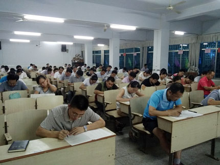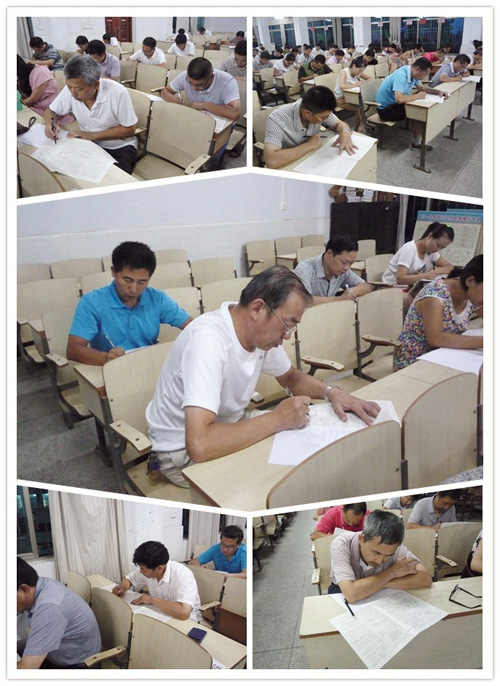 8月17日晚间,2016届高三年级组织了一期别开生面的培训活动,全体高三教师在二楼电教室参加集体考试,一展解题基本功,考试内容为本年度各科目高考试题。作为我校暑期集训专题系列之四,其特别之处在于:全真模拟考场环境,全体教师(包括年级领导、50岁以上教师)参与,考试期间安排监考,要求上交手机,认真应考,全程有影像记录。