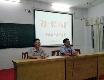 考前,阳新一中校长明道树(右)作重要讲话 |