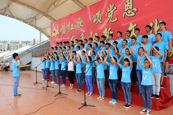 时间过得很快,当在场全体师生还沉浸在这些有故事有画面的红色歌曲中时13只合唱代表队已一一登台表演完毕。台下评委迅速评分,最终一(4)、二(2)等8个班级代表队获得二等奖,二(4)、一(19)等4个班级获得一等奖,高三补习部的师生们教学学习成绩出色,唱红歌成绩更出色,他们勇夺特等奖!
