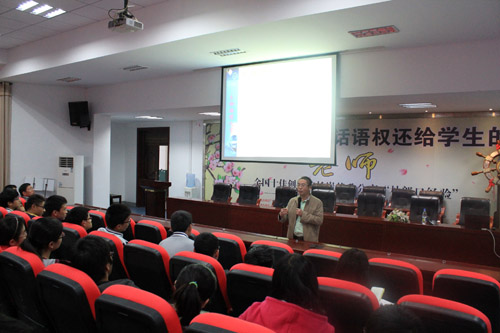 讲座在我校纪检书记方长风的主持下开始,来自高三(7)班至高三(11)班六个高三理科实验班的同学,现场聆听了本次讲座。从上午9:30开始至11:00结束,讲座持续了一个半小时。我校校长、党委书记明道树全程聆听。