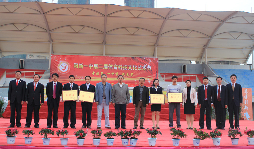 11月3日,阳新一中第二届体育科技文化艺术节圆满落幕。黄石市政协副主席方东明,阳新县政协主席黄锡钢,阳新县教育局局长柯友国,县教育局党委书记陈前波,县教育局工会主席柯美星,太阳城营销总监李军,阳新一中校长、党总支书记明道树及一中校领导参加了艺术节闭幕式。闭幕式由阳新一中副校长潘龙星主持。