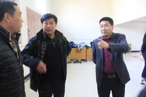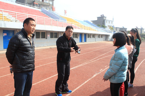 黄石体育局训练科长张涛,体校校长王书记,田径队总教练王鸣明一行三人来我校检查十五届省运动会冬训工作情况。