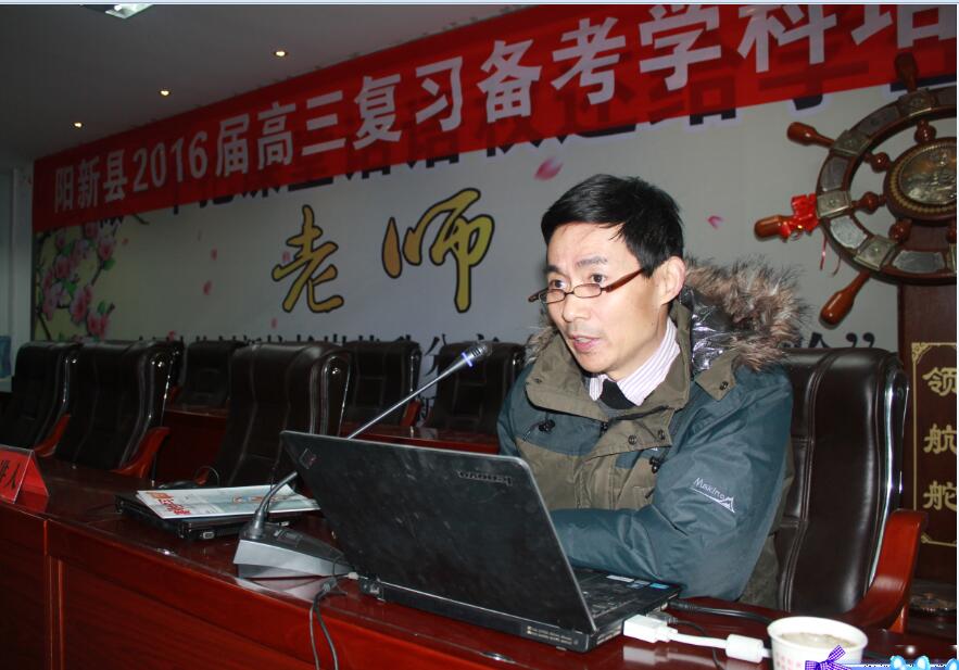 本次会议主题是“回归全国卷背景下的高三数学复习备考之应对策略”,会议议程有三项,第一项是由阳新一中工会主席肖绪曙致欢迎词。第二项就由华科大附中高保中作题为“回归全国高考后的高三数学备考与复习”的报告,高教授先就湖北卷与全国卷的的考点分布异同点作了比较,并且很详细地分析了全国卷的命题特点,这对我们应对2016年湖北省数学学科重返全国卷的高三复习备考具有很强的指导意义。高教授还就数学高考中的六大主干知识的考点及试题进行了分析,并对每一个模块的复习都提出了宝贵的建议,对我们正在进行的数学一轮复习备考大有裨益。本次会议,全县三所高中的全体数学老师没有一个缺席会议,而且会场纪律非常好,大家都很认真地听报告并做笔记。