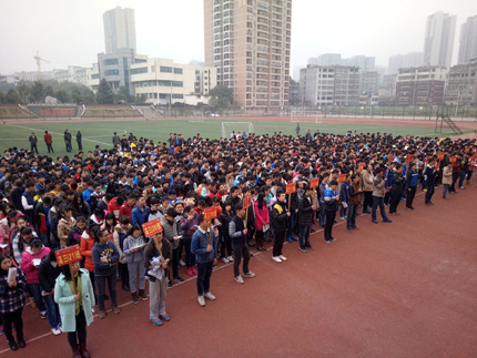 20151130日早晨七点,高三年级(1)一月一次的晨训在学校运动场举行。本次晨训围绕近期高考复习备考展开,由年级支部书记刘元庆主持。