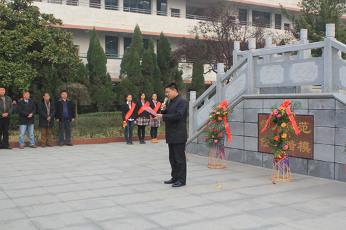1223日上午930分,为石瑛先生铜像敬献花篮仪式在石瑛广场举行。阳新一中副校长柯美宝主持了献花仪式。