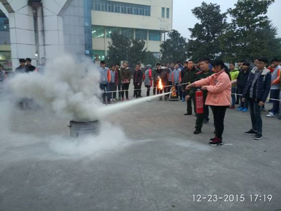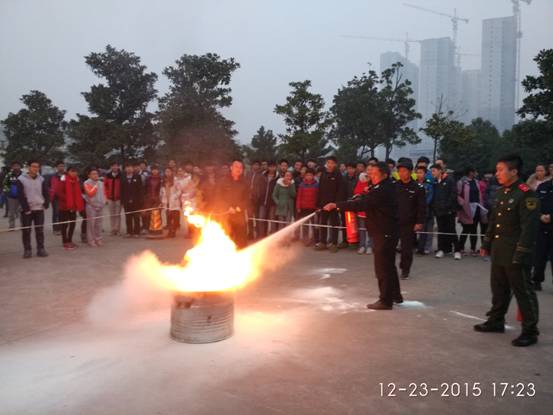 最后,在学校凌云广场消防官兵现场指导学校部分师生和安全保卫人员以及寝室公寓管理人员如何正确使用灭火器,并进行灭油火进行实物演习。