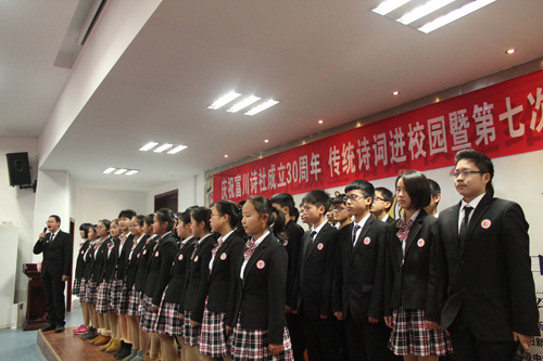 在完成了富川诗社换届选举议程之后,浓墨重彩的点睛之笔是由阳新一中实验班学生表演的传统诗词呤诵,同学们着装整齐,声情并茂,气势长虹,余音绕梁,振人心魂,会场顿时进入高潮,掌声雷动,经久不息,本次活动取得圆满成功。