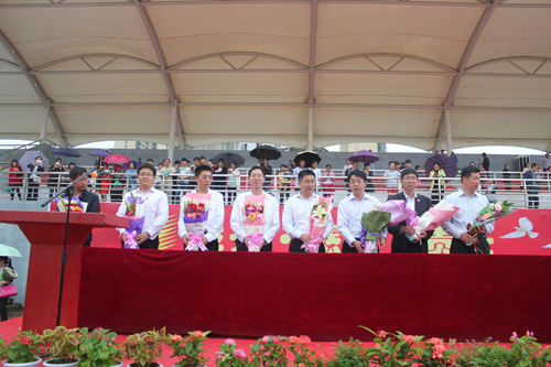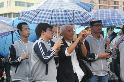 上午945,激昂的音乐声响起,高三年级21个班,1180多名学子喊着嘹亮的口号,在学校领导、老师和家长们的祝福下,怀着以无比骄傲的心情,依次昂首阔步跑向红地毯,跨入成人门,预示着他们已经走向独立和成熟,以全新的面貌迎接未来的生活。班主任和各班的科任教师在门前迎候,对孩子们的成长表示祝贺,学生们也给老师和学校领导们送上鲜花,感恩师长的关心和栽培,感恩母校的精心培育。
