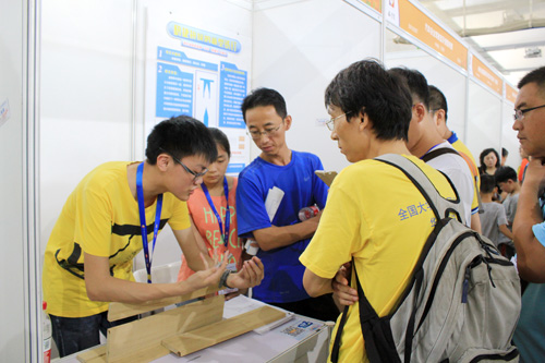 我校选手现场给专家、观众展示和讲解研究成果 |