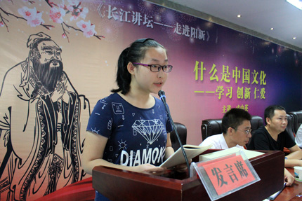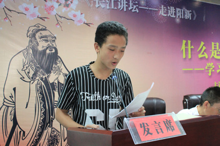 会上,初中部陈世明主任向全体同学宣讲阳新一中学生行为规范,七、八、九各个年级的学生代表上台发言。