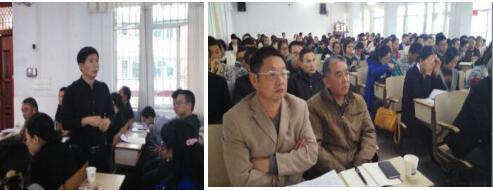 本次主讲是大冶一中著名的新课标教材培训专家余锦银老师,主讲的题目是《高三复习备考略谈》,余老师亲和力很强,幽默风趣,譬如:高三的“豪言壮语”:不苦不累,高三无味;不拚不博,人生白活,又如:郭靖(《射雕英雄传》里人物)还能不能考上大学?等等,不时爆发阵阵喝彩。余老师先介绍了高三复习的三轮安排情况,重点讲了复习方法与策略:1.立足课本,夯实基础知识,注意通性通法,淡化特殊技巧;2.理顺五种关系:看与练、听与记、学与问、难与易、快与慢;3.注重对知识系统的把握和学科思想的提炼;4.重视定时与限时练习。余老师的讲座,紧扣高考,回归课本,朴实而精深,对我校的高三复习备考有很强的指导作用。