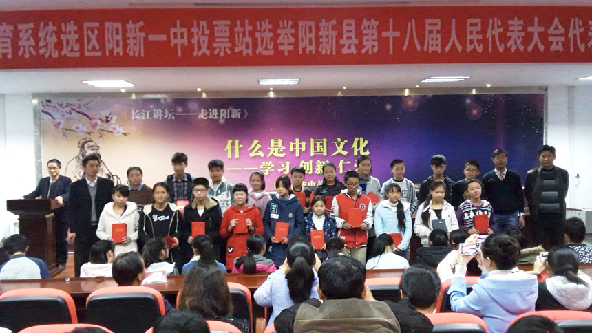 1117日晚,教育城初中2016年秋期中总结表彰大会在综合楼学术报告厅举行,县教育局党组委员、工会主席柯美星,阳新一中党总支委员、工会主席肖绪曙参加大会。