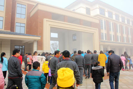 31日上午8:00,几辆大巴车赫然停靠在我校新大门前,老师们陆续上车。8:30左右,大巴车向城东新区进发,约十分钟车程,抵达了第一目的地——城东新一中。