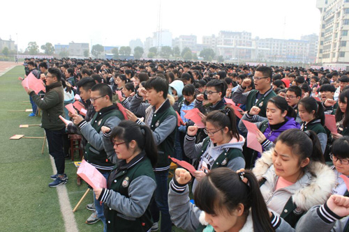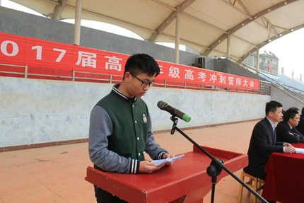 高考冲刺大会在高三年级全体教师和学生的庄严宣誓中结束。此次誓师大会,进一步加强了教师的责任感和使命感,增强了学生拼搏高考的意识,也分享了家长们服务孩子的心得。大家的心凝成了一股绳,“2017高考必胜”的信念随着李永红副校长激昂的声音,传播到每一位与会者的心中。