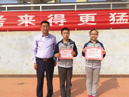 阳新一中校长明道树(右一)给优胜者颁奖 |