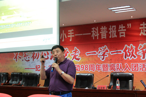 5月25日下午,“大手拉小手——中国科普报告”走进阳新一中。空军退役飞行员、大校赵育青应邀给阳新一中学子作了一场生动的《空中机器人——无人机》科普报告。报告会由阳新一中工会主席肖绪曙主持,阳新一中校长明道树、阳新科协主席徐美芳等领导与同学们一起聆听了赵育青大校的精彩报告。