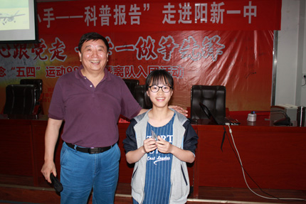 讲座结束后的交流互动环节,更是将整场报告推向了高潮。同学们利用宝贵的机会就相关知识及感兴趣的问题向徐教授请教,徐教授即时精确的作答,又博得了大家的阵阵掌声。讲座历时一个多小时,通过此次讲座,同学们了解了很多有趣的空中机器人航天知识,开阔了眼界,在心间播下了一个蓝天之梦,同时激发了学生爱科学、学科学、用科学的热情,为他们树立正确的世界观、科学观起到一定的促进作用,也进一步拓宽了阳新一中的科技教育。