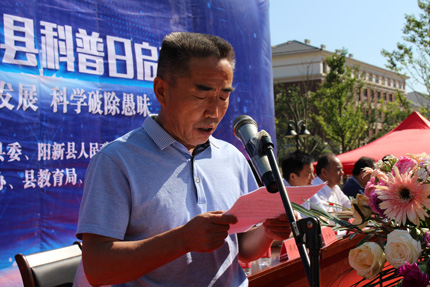 启动仪式首先由我校党委书记、校长明道树同志对我校科普工作作汇报发言。明校长在发言中,向出席本次活动的各位领导和来宾表示热烈的欢迎,向支持我校各项工作的领导和来宾表示衷心的感谢。然后从“成立科普活动领导小组,营造科普文化氛围”;“定期开展科普讲座,激发学生学习兴趣”;“举办‘体育科技文化艺术节’,打造学生展示自我的交流平台”;“组织学生参加高校科学营,让学生感受科学的神奇与魅力”;“坚持开展小制作、小发明和科技创新小论文等教学培训活动”等五个方面,详细汇报了我校近年来在科普教育方面所做的工作及所做出的科技创新成绩。明校长表示,将全力以赴,出色完成县委县政府和各级领导交给我们的立德树人的任务,为推动我县公民科学素质建设,提升全民科技文化素养做出更大的贡献,使阳新县的教育教学成绩和科普教育水平再上新台阶,再创新辉煌。