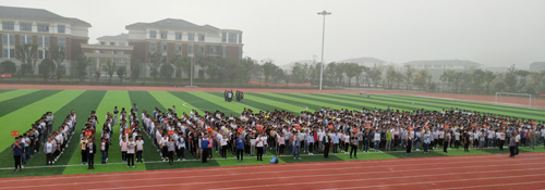 活动结束后,22个班级有序跑步退场。