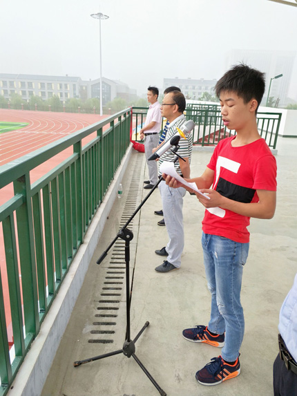 学生代表——高一(1)部学生会主席、高一(11)班程鑫同学作《努力学习,从我、从今天做起》的演讲,他从“什么是努力?为什么要努力?怎样去努力?”三个方面,向大家展示了作为高一新生应有的人生姿态!