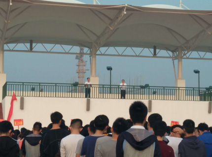 晨训现场 阳新一中副校长梁师稳讲话