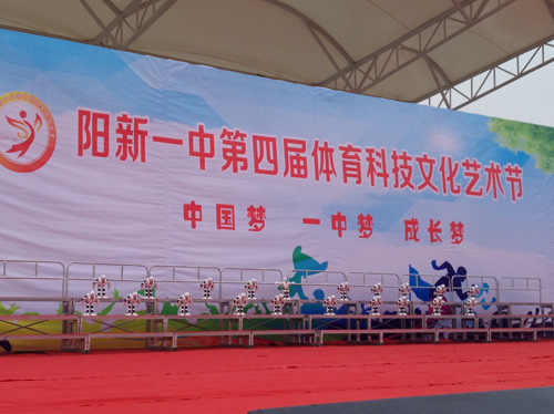 11月22日上午9点,阳新一中第四届体育科技文化艺术节在学校运动场隆重开幕,开幕式现场展示了我校青少年科技制作成果。其中机器人跳舞表演吸引了眼球,博得了观众喝彩。开幕式上的科技展览拉开了阳新一中校园科技活动的序幕。