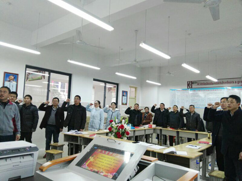 为了进一步深入学习贯彻十九大精神,让最新最强思想入脑入心,力促我们的教育事业迈向新台阶开创新局面,12月21日下午四半点,我校高二年级(1)部党支部在年级党员活动办公室召开了以“深入学习贯彻十九大精神,立足岗位做先锋模范党员 ”为主题的党员民主专题学习会。校党委副书记潘龙星副校长、高二年级(1)部主管领导梁师稳副校长、高二年级(1)部党支部书记陈荒原老师及全体普通党员教师共同参加了会议,会议由陈荒原书记主持。