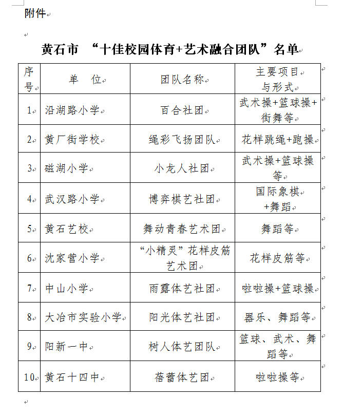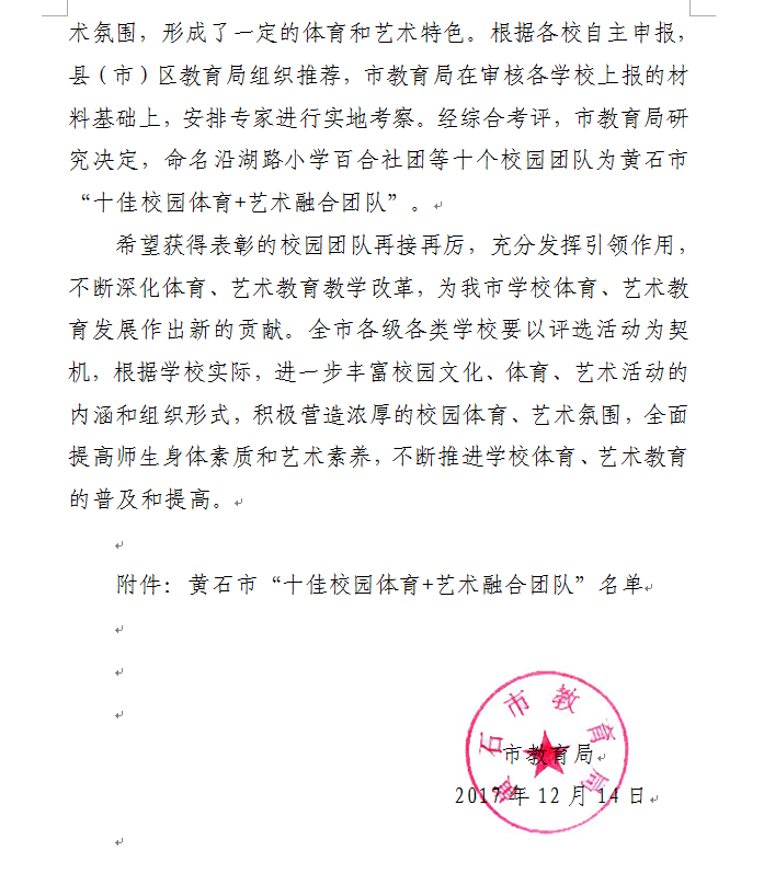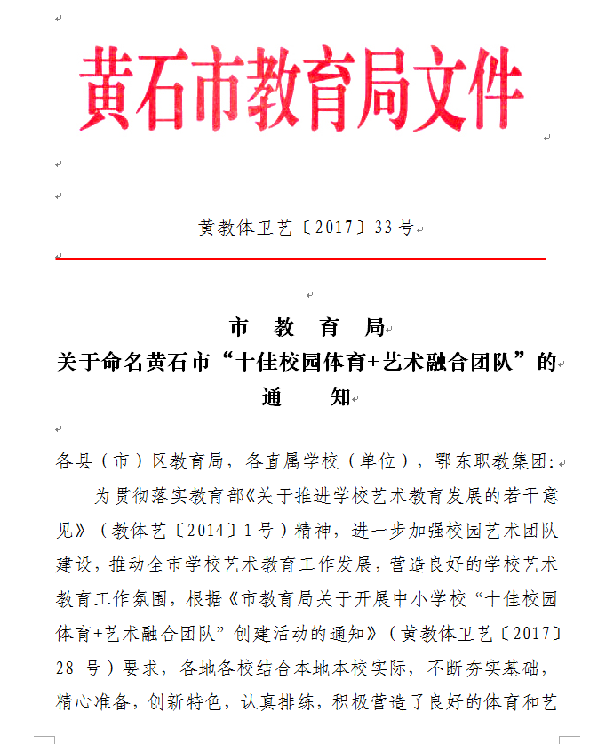 我校被评为黄石市"十佳校园体育+艺术融合团队"