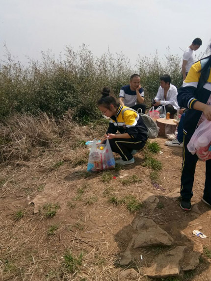 这是一次义务环保之旅。无论在山顶一览众山小,还是在山脚“舞台乾坤大”,大家都随手拾捡,留下一方净土。