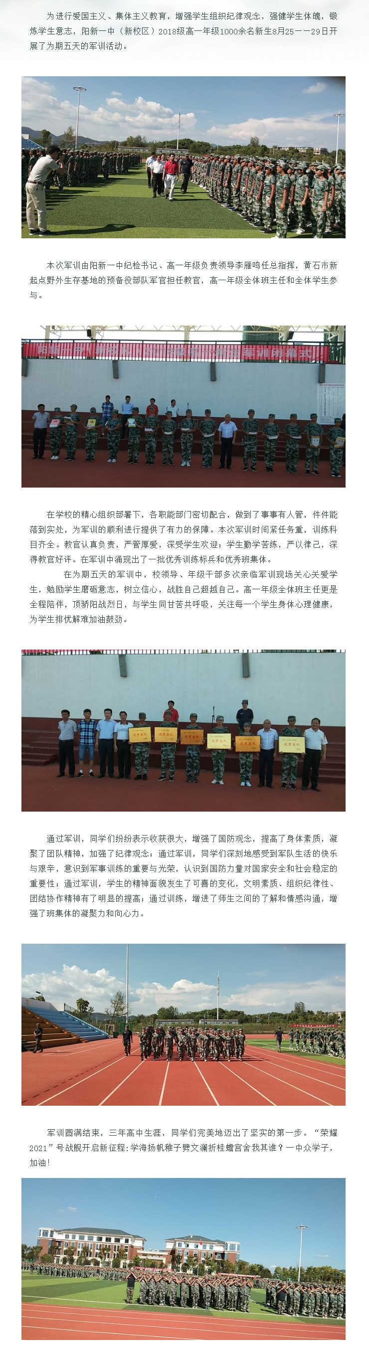 ——阳新一中(新校区)2018级高一年级新生军训圆满结束