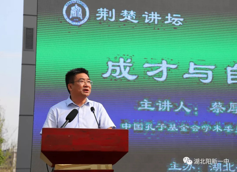 9月28日上午,由湖北省社会科学界联合会主办,阳新县图书馆、阳新县第一中学和阳新县新华书店联合协办的“荆楚讲坛”之阳新一中文化讲坛在城东新校区文化广场正式开讲。特邀嘉宾中国孔子基金会学术委员会委员、《寻庐讲坛》学术委员会主任蔡厚淳教授以《成才与自律》为题作开坛第一讲,校党委书记、校长明道树担任讲坛主持人,高一年级全体学生、全体班主任及课任教师1000余人参加学习。讲坛肃穆庄严,秩序井然。