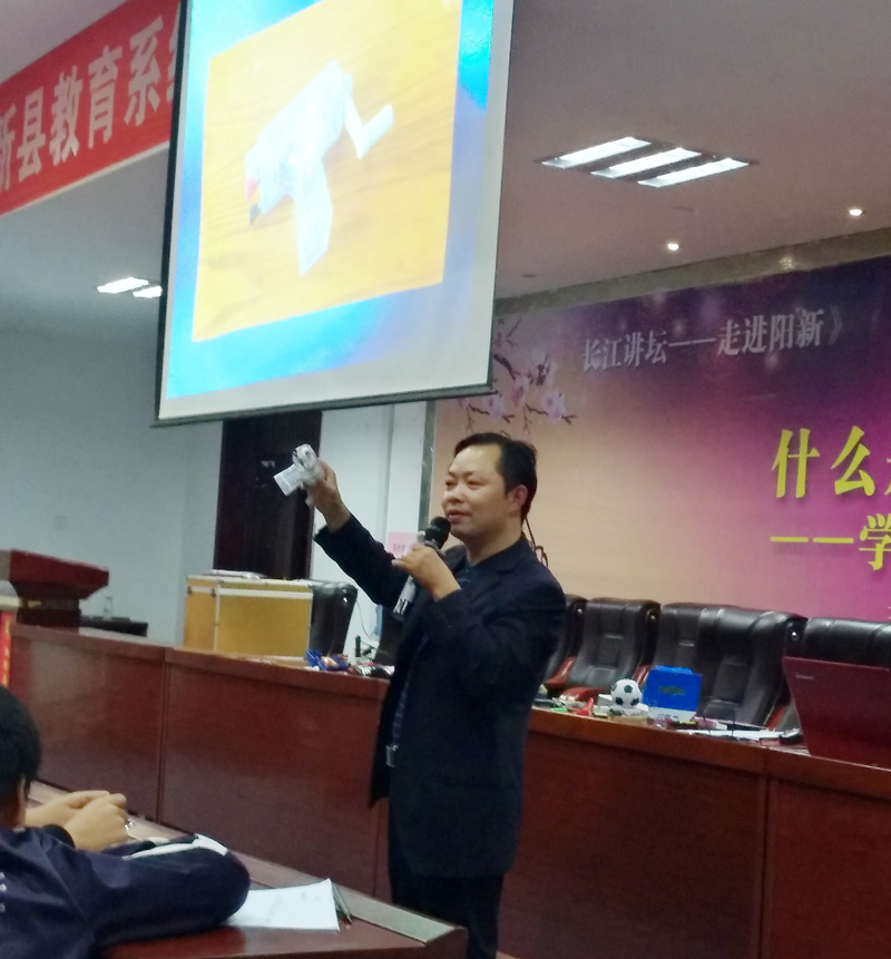 1024日晚上7:00,我校第6期科技创新辅导讲座在阳新一中老校区学术报告厅举行,阳新一中物理教研组长、湖北省优秀科技教师朱建华作了“小发明、小制作和科技创新小论文的专题辅导讲座”。