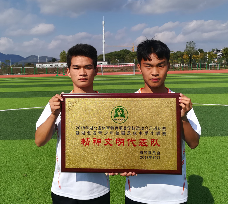 20181021日我阳新一中足球队再度代表黄石市出征“湖北省青少年校园足球联赛”总决赛,历经12天的角逐我校虽无缘八强;但校队全体运动员发扬了“敢打敢拼,吃苦耐劳”的一中精神,在全省兄弟学校面前拼出了我们一中学子的精神风貌;并且我们校队在外出比赛的12天日常行为规范评比中表现突出,以绝对优势在二十支比赛队伍中天天名列第一,搏得了省领导与兄弟学校代表队的一致好评;在最后的省校园足球联谊会上,我校队全体队员集体合唱校歌亦令全场欢声雷动,让我们阳新县第一中学在本次大会上做了一次很好的展示,“精神文明代表队”实至名归。