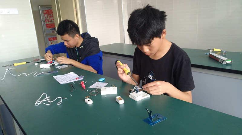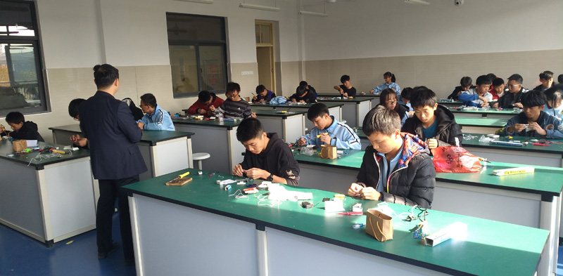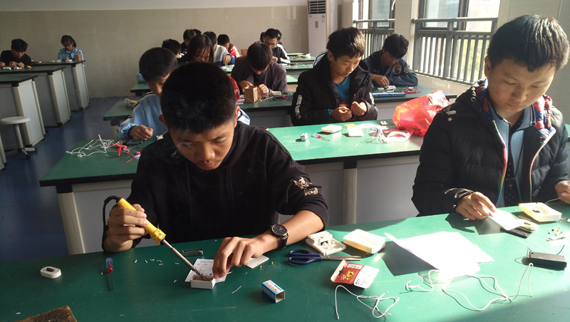 为培养学生的核心素养,提高学生的创新意识、实践能力,我校开设了校本课程——《无线电制作》,为无线电爱好者提供学习机会和自我展示的舞台,课程的主讲教师由我校物理学科组长朱建华老师担任。经过多轮培训、初赛选拔,学校精心选拔了25名同学参加首届无线电制作比赛决赛,决赛于24号上午在新校区物理实验室进行,内容是现场制作门铃,在紧张激烈的比赛中,最终决出一等奖11名,二等奖14名。