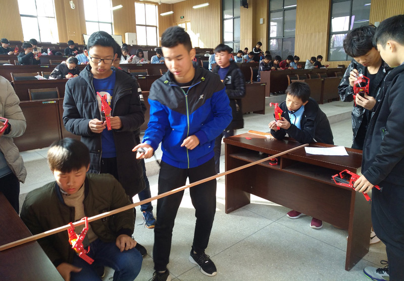 7、爬杆机器人比赛。爬杆机器人比赛再次纳入艺术节科技项目比赛内容,也是学生比较感兴趣的活动,重在考查学生的动手能力与创新意识。11月9日、10日,朱建华、柯贤根两位老师共同对新老校区的爬杆机器人制作比赛选手进行了两场培训,有100余名学生参加培训,最终筛选50余位同学参加艺术节期间的决赛。比赛决定于11月23日上午9:00在新校区明道楼学术报告厅举行,比赛产生一等奖10名,二等奖20名,三等奖6名。