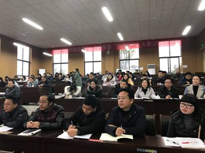 微雨冷风寒潮到,难挡研讨热情高。12月26日上午,黄石市2019届高三语文作文教学研讨会在阳新一中新校区明道楼报告厅举行。上午8时,报告厅内已座无虚席。黄石市教科院高中语文教研员谭清才主任、大冶教研室高中语文教研员刘碧玲老师、阳新教研室高中语文教研员王敏老师及全市各高中带队领导和语文老师代表,阳新一中副校长梁师稳、方长风、王能勇、李雁鸣及学校全体语文老师参加了研讨会。研讨会由市教科院谭清才主任主持,阳新一中方长风副校长致词。
